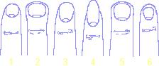 | ФОРМА НОГТЕЙ Форма ногтей, как и форма ладони, может указывать на некоторые черты характера человека. Основные формы ногтей: Обладатели Коротких ногтей (1): - Энергичны, - любопытны, - у них развита логика, - интуиция Обладатели Коротких ногтей, ширина которых больше высоты (2): - критичны в отношении к действительности, - сдержанны. Обладатели Широких, длинных, закругленных у вершины ногтей (3): - Рассудительны, - обладают четким и ясным мышлением. Обладатели Очень длинных ногтей, овальной формы (4): - Мечтательны, - спокойны. Обладатели Очень больших ногтей, квадратной формы (5): - истинные флегматики, - зачастую эгоистичны. Обладатели Небольших ногтей, клиновидной формы (6): - как правило очень чувствительны.